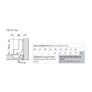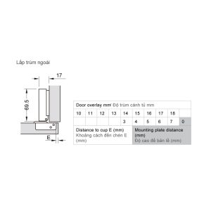 | Chiều sâu lỗ khoan: Chén bản lề 12 mm | |