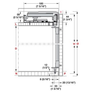 • Chiều sâu lắp đặt: Phụ kiện không gồm cửa: 185 mm