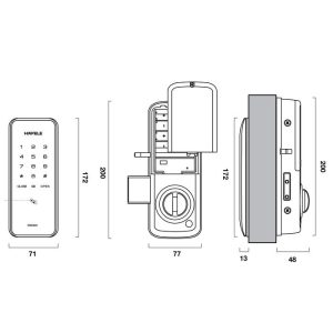 | Trọn bộ gồm Supplied with | – 1 mặt trong khóa & 1 mặt ngoài khóa – 1 tấm đỡ mặt trong khóa – 1 Bas khóa – 3 tấm lót bas khóa – Bộ ốc vít – 1 Hướng dẫn sử dụng – 1 Hướng dẫn lắp đặt – 2 thẻ từ lớn (85.5 x 54mm) – 2 thẻ từ nhỏ (45 x 15mm) |