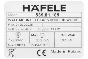 - Máy hút mùi áp tường Hafele HH-WG90B 539.81.185 với thương hiệu uy tín của Đức, tính năng tiện ích và hiệu suất hút mạnh mẽ là lựa chọn tốt cho mọi gia đình, mang đến không gian bếp trong lành và thoải mái trong quá trình nấu nướng và chế biến thực phẩm.