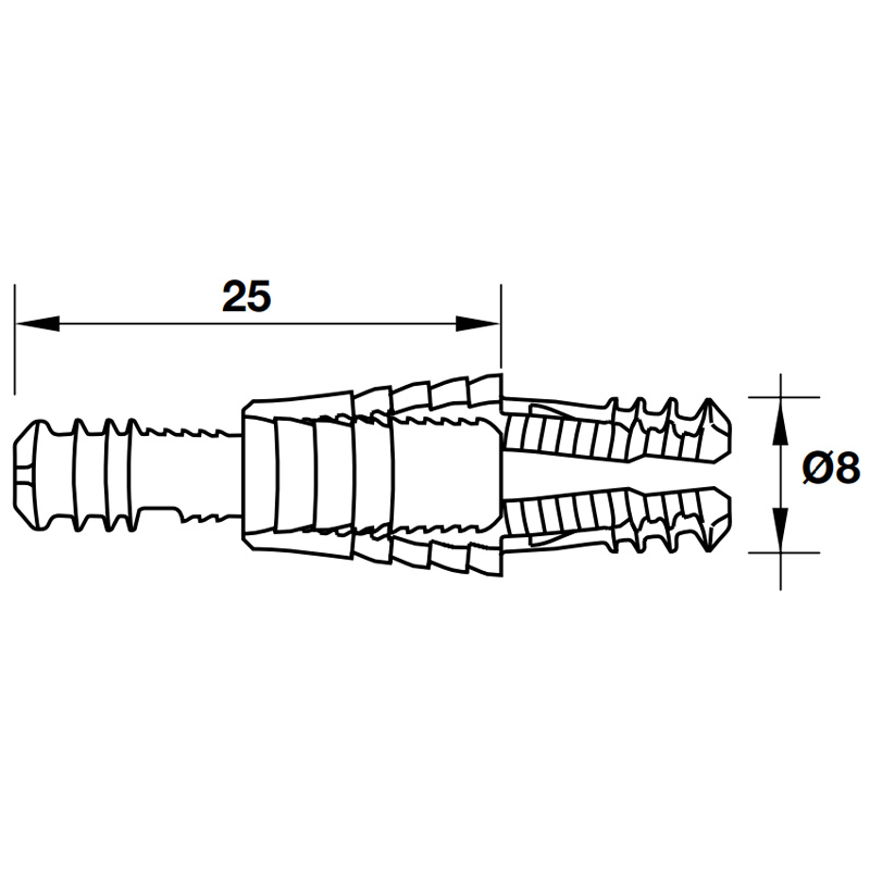 • Lắp đặt: Lắp vào lỗ khoan Ø8 mm không cần dụng cụ, có thể dùng keo dán