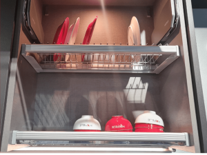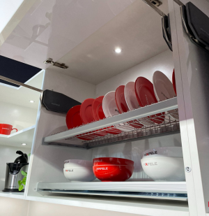 - Rổ đựng chén đĩa cố định dành cho tủ bếp trên, giúp bạn sắp xếp và cất giữ chén đĩa một cách ngăn nắp, tiết kiệm không gian và tạo ra sự trật tự cho tủ bếp của bạn.