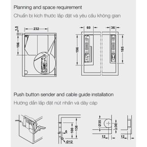 • Chiều rộng cánh tủ: <1.200 mm (>1.200 mm = 2 bộ)